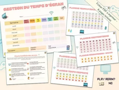 Tableau gestion du temps d’écran enfant – Kit PDF à imprimer